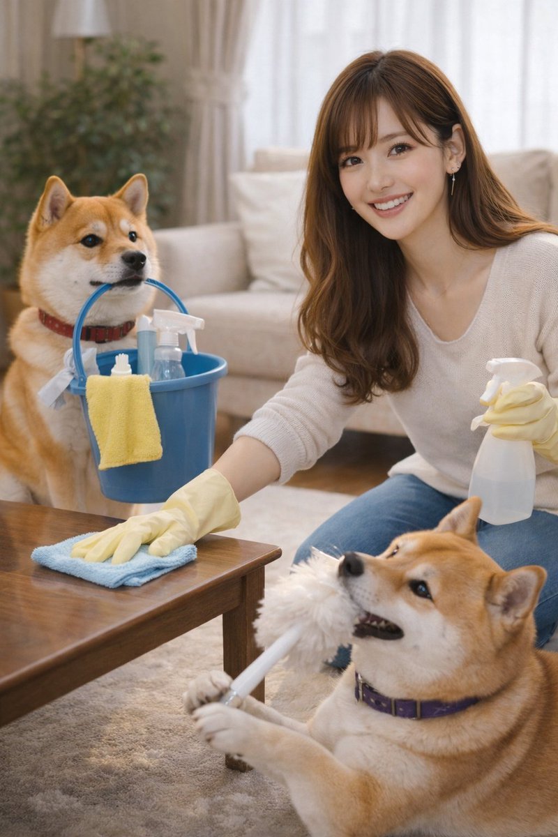 RT @sakuranoitiniti: 結局1人と二匹で仲良く 掃除中 楽しいワン🐶 #柴犬お手伝い #さくら家掃除部