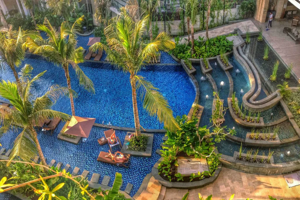 A 4-star hotel surrounded by lush gardens, offering an on-site spa and two infinity pools.